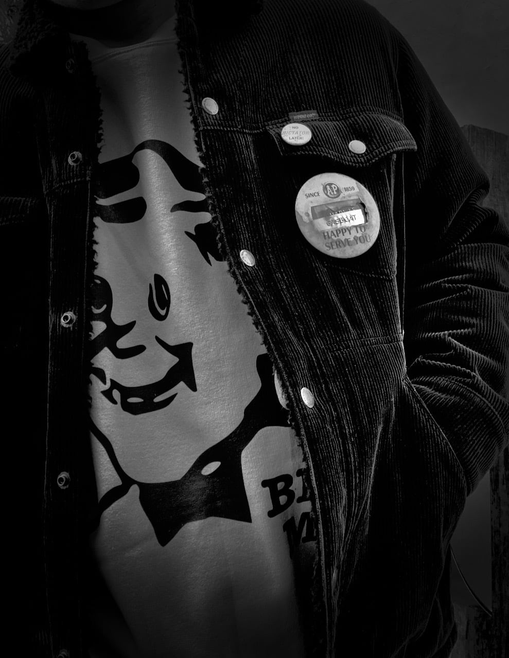 ジャケットの下から覗くオジサン…笑
